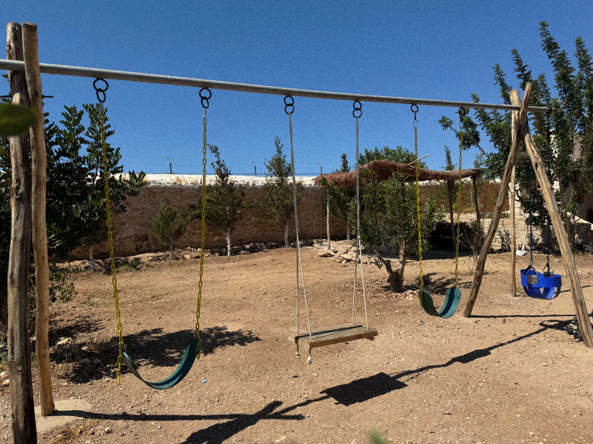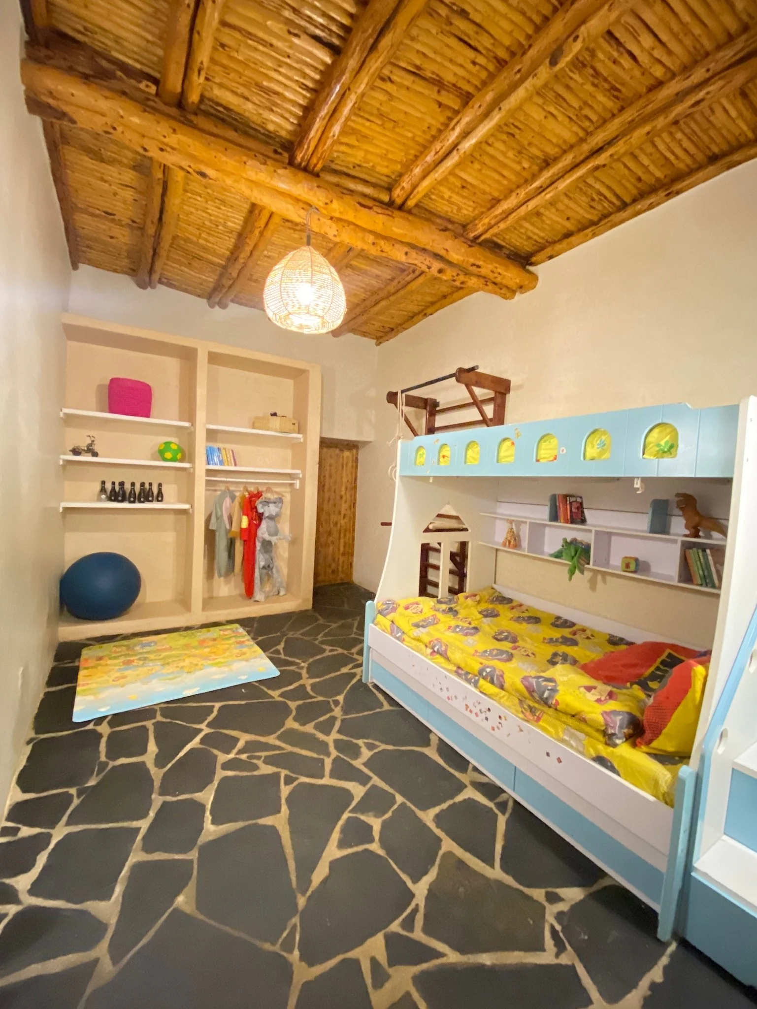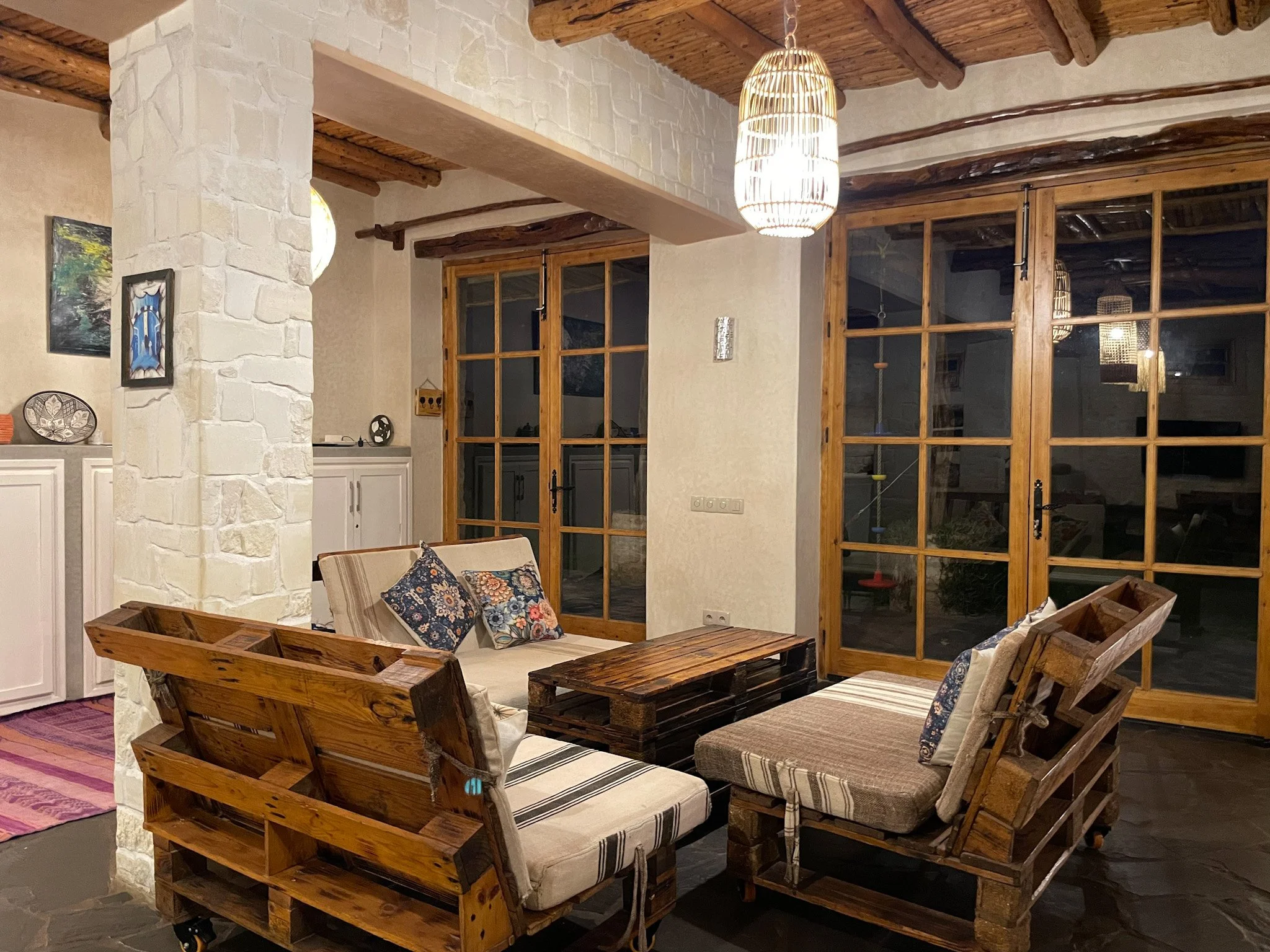 Newly constructed in 2022, this 3-bedroom, 2-bathroom retreat features high wooden ceilings, locally sourced rock floors, and a tranquil setting amidst olive, argan, and fruit trees. It includes two master bedrooms with king-size beds and a kid-friendly room with a bunk bed and an extra single bed. Designed for both comfort and style, the property is private, fully fenced, and offers amazing mountain views, making it the ideal choice for your stay.